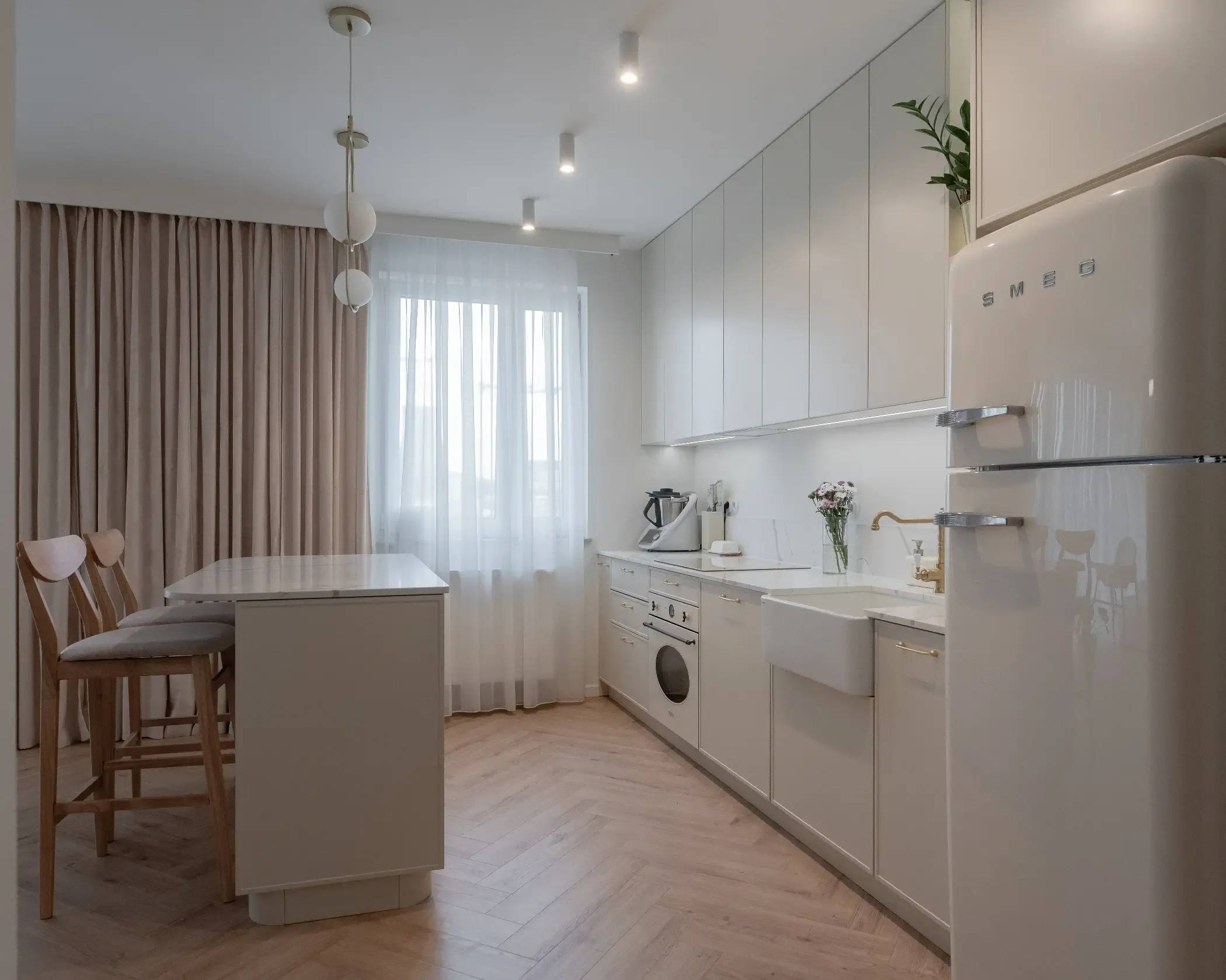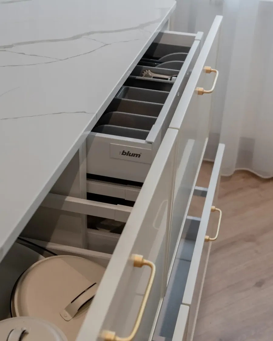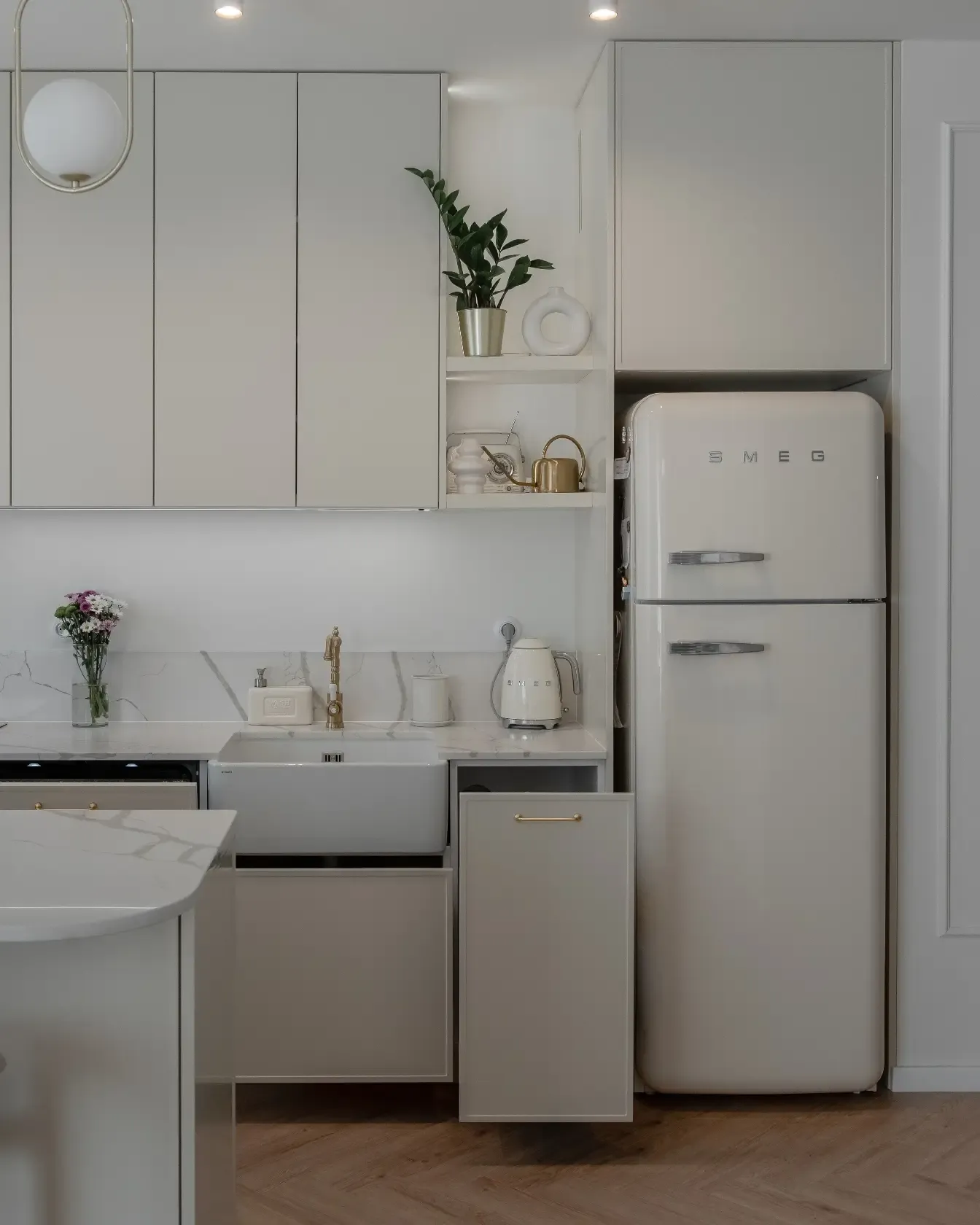 Oraz złote akcenty, dodające przestrzeni lekkości i nowoczesnego charakteru.
